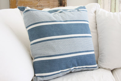 Eric and Dani are giving away a 22" by 22" down pillow, made from antique french ticking, to one lucky reader.